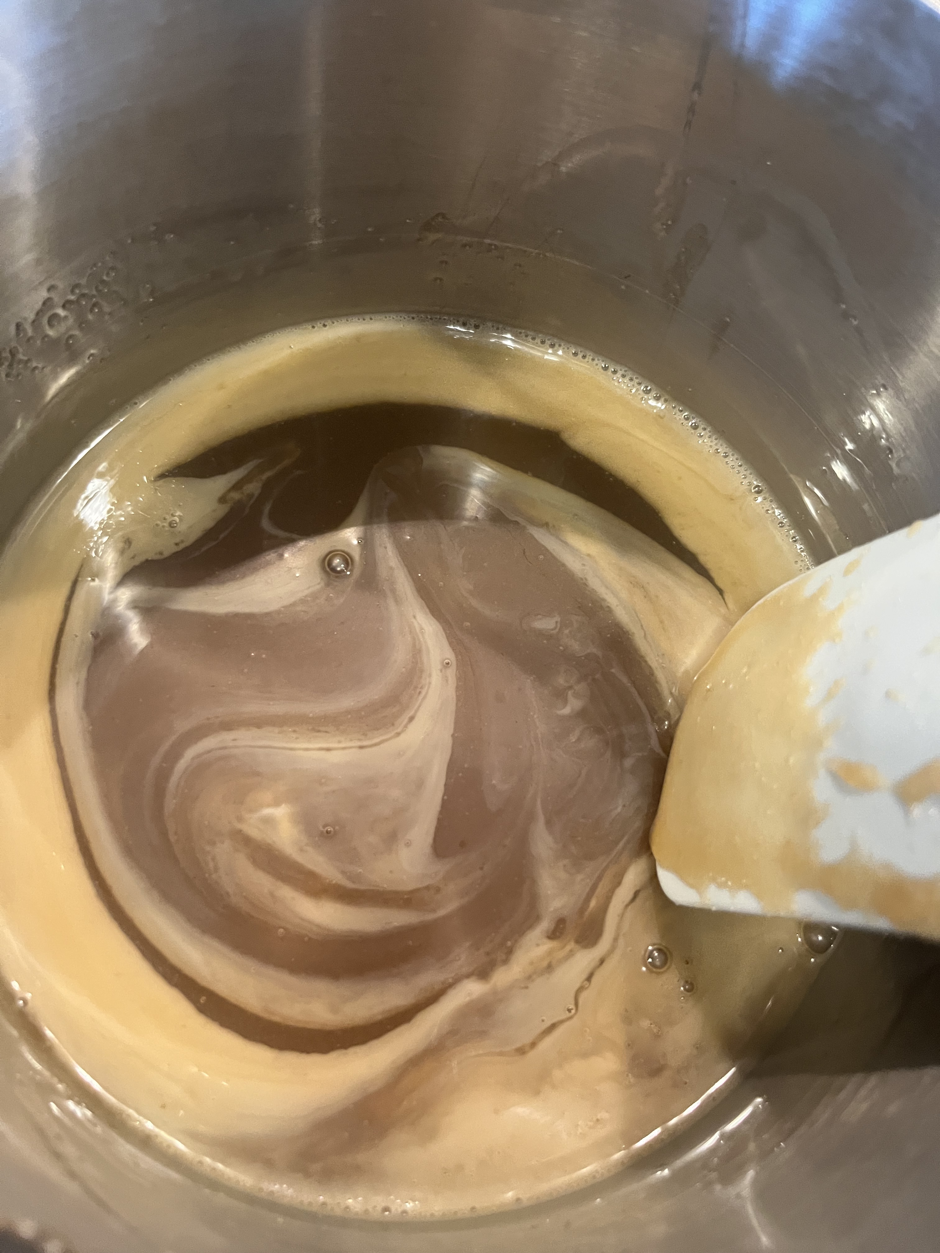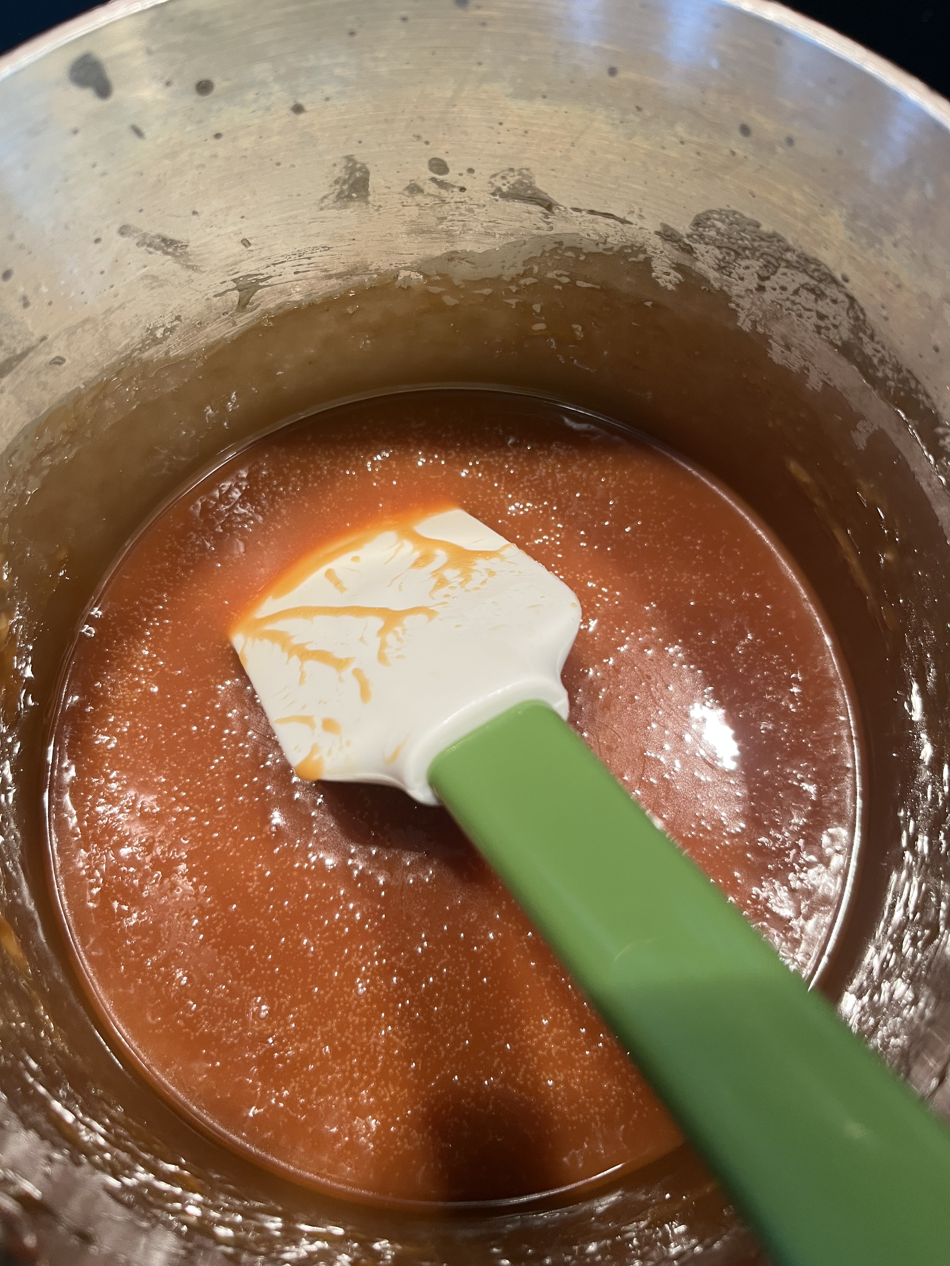 - 🧈 Ready for the buttery ballet? As soon as that sugar’s all melted and fabulously amber, swoop in with the butter. Brace yourself for the caramel tango – it’s gonna bubble and sizzle like a flavor fiesta! If things get a bit wild (sugar clumps or butter goes rogue), don’t panic – remove from heat and whisk it all back to harmony. If you’re feeling cautious, don your kitchen gloves and show that caramel who’s boss. Give it a whisking workout, even if it takes a few minutes. Once it’s a caramel dream again, back to the heat it goes.
